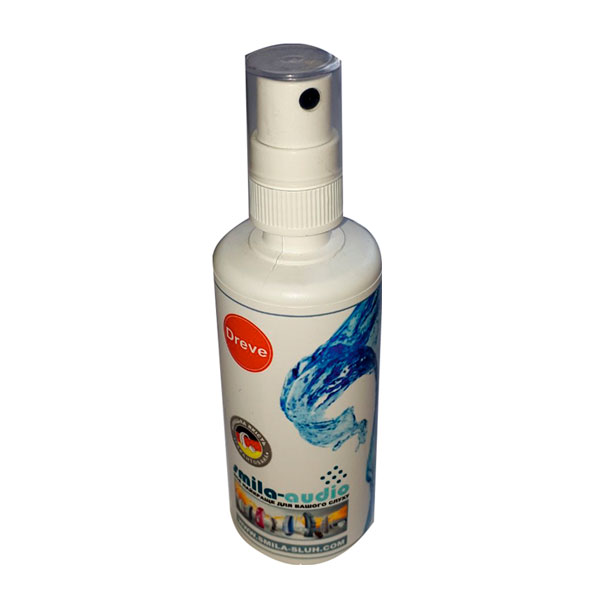 Спеціальний спрей 30 мл. для дезинфекції вушних вкладок або корпусів слухового апарату.